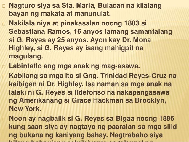 Ngunit sa kabila ng kakayahang ito nararapat ding lapatan ang aksiyon ng responsibilidad. Ang pangunahing karakter sa kwento ay hindi kinakakitaan at hindi nagpapakita ng pag-ibig. Reyes ay ipinanganak noong ika-28 ng Pebrero 1858 sa Bigaa Bulacan.