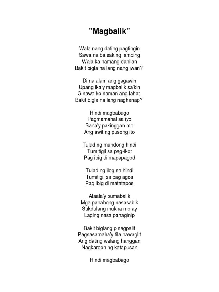 Na nagsasabing ikay manatili saKing piling. Pwede bang magtanong sandali lang. Mahal ko iyong dinggin.