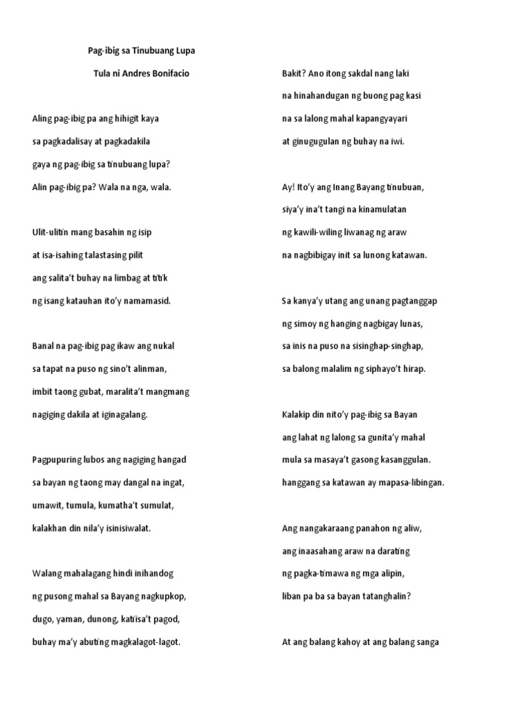 Mga katangian ng tunog. Wash and squeeze then set aside. Oo indio ng aking la tierra pobreza daan-daang taon kang inalipin at inaalipin hanggang ngayon ng mga panginoon ng dusat pagsasamantala ngunit sa lagablab ng apoy ng sigang sinindihan.